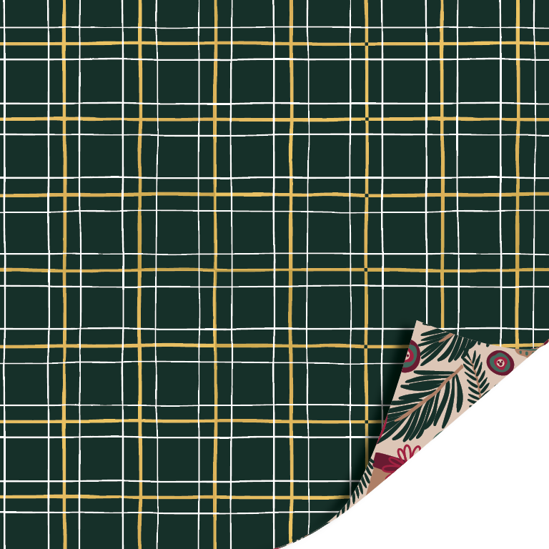 Dit cadeaupapier heeft aan de ene kant een klassieke groene ruit in warme kersttinten, terwijl de andere kant een sfeervol patroon toont met bloemen, bladeren en feestelijke details. Dankzij deze dubbele uitstraling kun je eindeloos variëren met inpakken en accenten. Het stevige papier vouwt mooi en blijft strak zitten, ideaal voor luxe cadeaus en creatieve kerstprojecten.